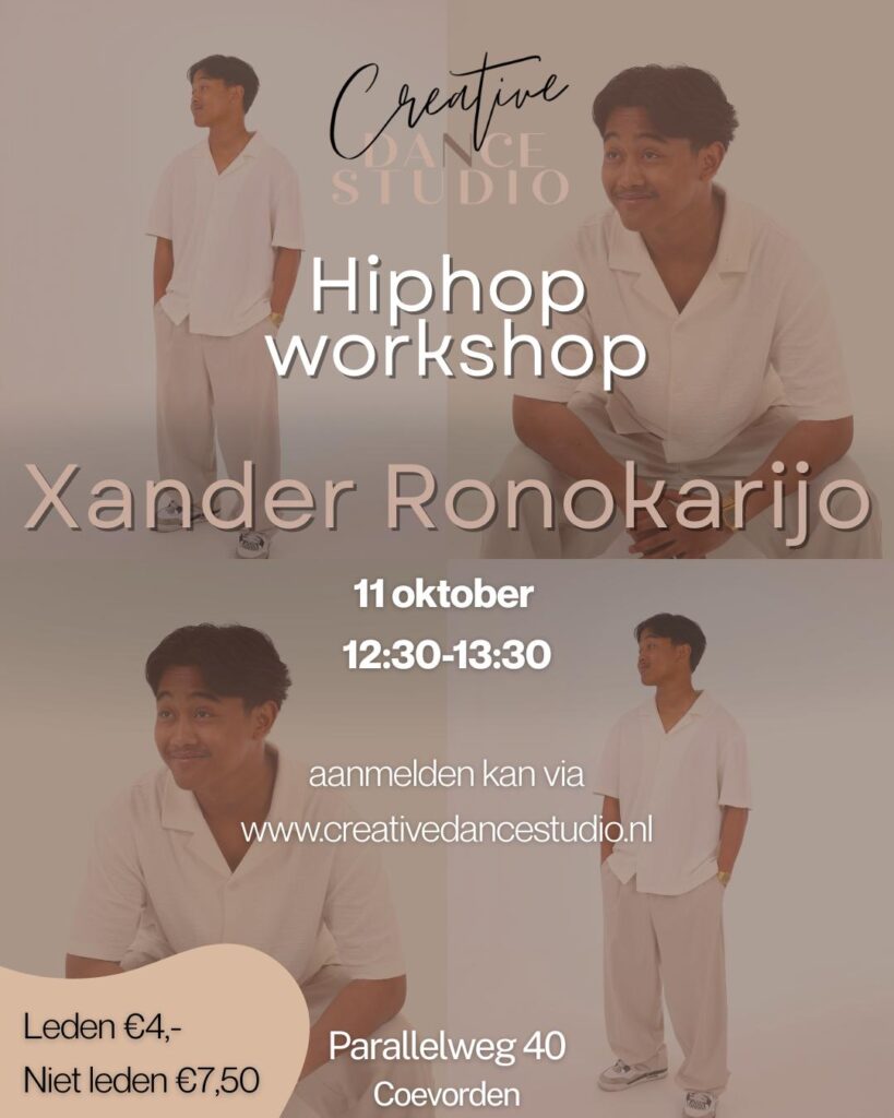 Op zaterdag 11 oktober komt Xander Ronokarijo naar Creative Dance Studio Coevorden voor een exclusieve hiphop workshop!